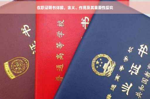 在职证明书详解:含义、作用与重要性。在职证明书是一种证明个人在职状态的文件,通常用于证明某人在特定单位担任的职务及工作年限。它对于求职、升职、办理贷款等方面具有重要作用,是评估个人工作能力和经验的重要依据。了解在职证明书的含义和作用,有助于个人在职业生涯中更好地展现自身价值和能力。