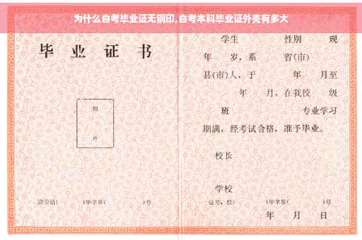 2003年及其以后的自考毕业证是教育部考试中心统一印制的,其毕业生的相片不是贴上去的,而是电脑打印机印上去的,故无须加盖钢印.但2003年以前的自考毕业证书是贴相片的,故有钢印. 不仅自考毕业证书没有钢印,而且全国计算机等级考试的合格证书(由教育部考试中心颁发)也是电脑打印照片的,故也无钢印. 按照国务院高等教育自学考试暂行条例的规定,自考毕业证为省考委和主考大学盖章,故主考大学只盖公章不盖校长章也是符合规定的. 目前各普通大学的毕业证书是各校自已设计和印制的,样式五花八门,没有那二所大学的毕业证是完全一样的.所以自考毕业证与之不同是很正常的.