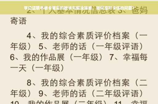 摘要:本篇文章探讨了学位证明书被卡住的问题及其背后的故事和解决方案。当遇到学位证明书被卡住的情况时,不必过于担心,可以采取一系列措施来解决问题。联系学校相关部门了解具体情况,确认所需材料是否齐全。积极沟通解决可能出现的问题,如材料缺失或证明过程繁琐等。寻求专业机构的帮助,以确保学位证明书顺利办理。本文旨在为遇到类似问题的读者提供指导和帮助。
