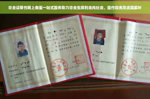 摘要:,,毕业证明书网上备案服务为毕业生提供了便捷的一站式服务,帮助学生顺利走向社会。通过网上备案,毕业生可以方便地获取自己的毕业证明,并享受相关服务带来的便利。具体操作流程简单易懂,毕业生只需按照相关指引填写个人信息、上传证件照片等步骤即可完成备案。这项服务为毕业生提供了极大的便利,让他们更好地融入社会,开启人生新篇章。