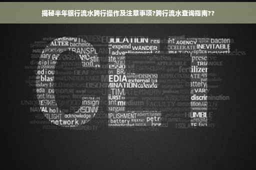 随着金融行业的快速发展,越来越多的人开始关注个人财务管理,其中银行流水作为重要的财务记录之一,备受关注,很多人想了解关于半年银行流水跨行的相关信息,比如如何操作、注意事项等,本文将详细介绍这一过程,帮助大家更好地管理个人财务。