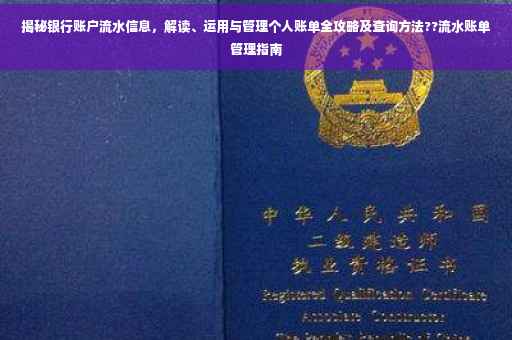 随着个人财务管理的日益重要,银行账户流水信息成为了我们日常生活中不可或缺的一部分,从工资收入到日常消费,从投资理财到贷款申请,银行流水账单都在其中扮演着重要的角色,本文将详细介绍如何解读银行账户流水信息,并探讨如何运用和管理个人流水账单,以便更好地掌握个人财务状况。