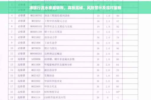 随着金融行业的快速发展,个人信用记录的重要性日益凸显,作为信用评估的重要依据之一,银行流水记录对于申请贷款、信用卡等金融产品的人来说至关重要,一些人为了获得更好的信用评级,采取凑银行流水亲戚转账的方式,虚构良好的财务状况,本文将深入探讨这种现象背后的真相,揭示其中存在的风险,并提醒公众正确对待银行流水记录。