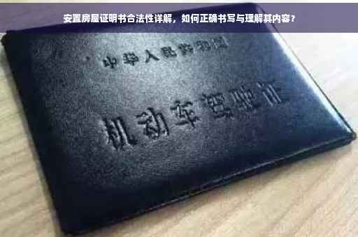 摘要:关于安置房屋证明书的合法性解析,该证明书是否合法取决于具体情况和法律规定。撰写时需注意包括房屋所有人信息、房屋位置、面积等详细内容,并确保符合相关法律法规。建议在撰写前咨询专业律师或相关部门意见,以确保证明书的合法性和有效性。如需了解更多关于安置房屋证明书的撰写方法和注意事项,请查阅相关法律法规或咨询专业人士。