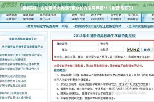 3、司法途径:在涉及财产纠纷等情况下,可以通过司法途径查询银行流水,向法院申请调查令,获取相关证据。