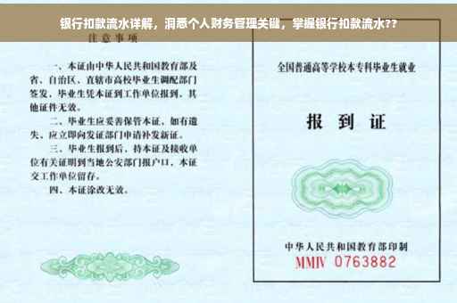 摘要:本文将详细解释银行扣款流水,帮助读者了解银行扣款流水的含义和作用。通过洞悉个人财务管理关键,读者可以更好地掌握个人财务状况,有效规划个人财务计划。银行扣款流水是个人财务管理中不可或缺的一部分,本文将对其进行全面解读。??