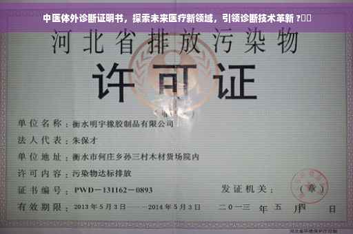 中医体外诊断证明书是中医诊断学的重要组成部分,具有独特的优势和发展前景,在现代医疗体系中,它为疾病的预防、诊断、治疗提供了有力支持,随着技术的不断进步和创新,相信中医体外诊断将在未来医疗领域发挥更加重要的作用。