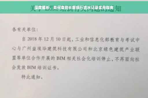摘要:本文将深度解析如何查询银行流水记录,提供实用指南。针对长时间前的银行流水记录,介绍几种查询方法,包括网上银行查询、手机银行查询、ATM自助查询及柜台查询等。本文旨在帮助读者轻松获取银行流水信息,解决查询难题。