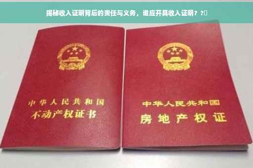 在现代社会中,收入证明已成为许多场合的必备文件,如申请贷款、租房、办理签证等,对于收入证明应该由谁开具,却常常引发疑惑和争议,本文将就此话题展开讨论,探究各方的责任与义务,以期为读者们提供清晰的指导。