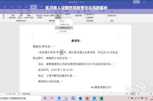 在当今社会,收入证明已成为许多场合的必备材料,如申请贷款、办理信用卡、租房等,一些人为了顺利过关或达到某种目的,可能会选择乱开收入证明,本文将深入探讨乱开收入证明的风险,提高大家对这一行为的警觉性。