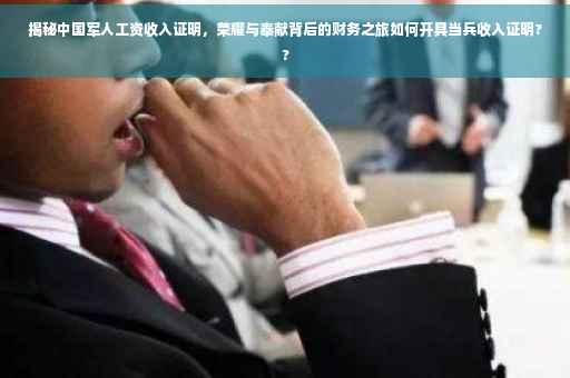 摘要:本文将探讨中国军人的工资收入证明,展现他们荣耀与奉献的财务之旅。文章将介绍军人工资的基本情况,包括收入构成和增长机制。还将详细解释如何开具当兵工资收入证明,包括所需材料和流程,帮助读者了解这一过程。这不仅是对军人职业的一种尊重,也是对他们荣耀与奉献的认可。