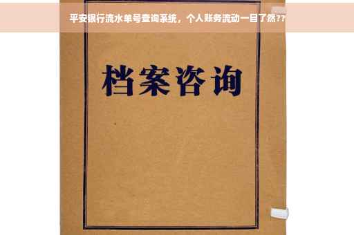 摘要:通过平安银行流水单号查询系统,轻松掌握个人账务流动情况。该系统提供便捷、高效的查询服务,帮助用户实时了解账户资金变动情况。使用流水单号查询,操作简便,只需输入相关单号,即可快速获取详细的交易记录。平安银行流水单号查询,为您的财务管理提供便捷通道。