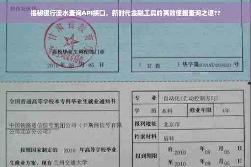 随着科技的飞速发展和互联网的普及,人们对银行业务的需求也日益增长,银行流水查询作为银行业务的重要组成部分,一直以来备受关注,近年来,随着API接口技术的不断进步,银行流水查询API接口逐渐崭露头角,成为便捷、高效的新时代金融工具,本文将详细介绍银行流水查询API接口的相关知识,包括其概念、功能、优势以及应用场景等。