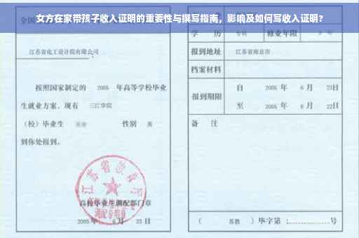 随着社会的进步和女性地位的提高,越来越多的女性选择成为家庭主妇,承担起照顾孩子和家庭的重任,在这样的背景下,女方在家带孩子的收入证明逐渐受到关注,这不仅关乎女性自身的权益保障,也关系到家庭的和谐与稳定,本文将探讨女方在家带孩子收入证明的重要性及其影响。