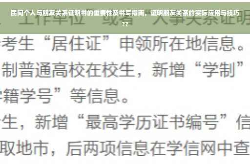 随着社会的不断发展,人与人之间的交往愈发频繁,个人与朋友间的联系也愈加紧密,为了更有效地维护彼此间的权益和信任,民间个人与朋友证明书逐渐受到社会的重视,这份证明书不仅具备法律效力,更是个人与朋友间关系与事实的重要证明,本文将详细阐述民间个人与朋友证明书的重要性、作用,并结合实际案例,让大家更好地了解和使用。