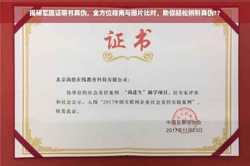 摘要:本文将为你揭秘军属证明书的真伪辨别方法,提供全方位的指南。通过本文,你将了解如何查询军属证明书真假图片,助你避免陷入不必要的麻烦。无论你是需要验证个人军属证明书的真实性,还是想了解相关知识,本文都将为你提供有用的信息。