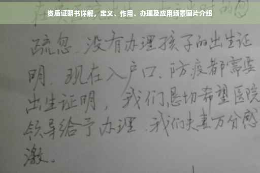 摘要:,,资质证明书是一种证明个人或企业具备某种特定能力或资质的文件。本文详细解释了资质证明书的概念、定义、作用以及应用场景。通过本文,读者可以了解如何办理资质证明书,并认识到它在不同场合下的重要性。还附有资质证明书图片供参考。