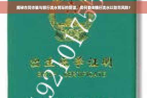 摘要:,,揭露合同诈骗与银行流水之间的阴谋,介绍如何防范合同诈骗风险。探讨如何查询银行流水,包括注意事项和可能存在的陷阱。提醒公众保持警惕,避免陷入合同诈骗的陷阱。通过了解银行流水的重要性和查询方法,提高个人及企业的风险意识,维护合法权益。