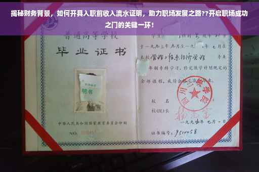 随着职场竞争的日益激烈,入职前的收入流水证明越来越受到企业的重视,这不仅是对个人财务状况的一种核实,更是企业评估求职者信用和稳定性的重要依据,一份真实有效的收入流水证明,无疑能为求职之路增添信心,让求职者更好地展示自己的经济实力和信用状况,究竟什么是入职前收入流水证明?如何准备一份有效的收入流水证明呢?我们将一起探讨这个话题。