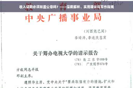 在现代社会,收入证明是许多场合所必需的一项证明材料,无论是办理贷款、申请信用卡,还是租房、入职等,都需要提供收入证明以证明个人的经济状况和信用水平,而在这个过程中,公章是否必不可少,是很多人心中的疑问,本文将从法律、实际操作及建议三个方面,对收入证明是否必须加盖公章进行深度解析。