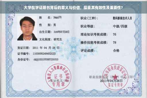 大学出具的在学证明书在学生个人发展、社会认可和教育评估等方面具有重要意义,通过本文的探讨,我们了解到大学在学证明书不仅是一份简单的证明文件,更是学生学术实力、学习经历和社会认可度的象征,我们应当重视大学在学证明书的作用和价值,充分发挥其在学生个人发展和社会进步中的作用,学校和教育部门也应加强对在学证明书的管理和认证,确保其真实性和有效性,为学生的学习和发展提供有力支持。