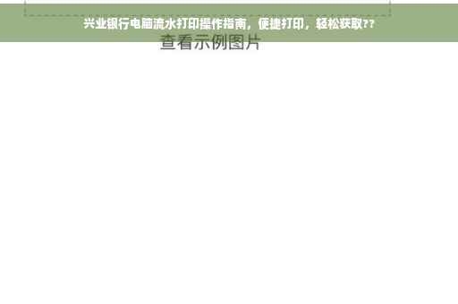 本文详细介绍了兴业银行电脑流水打印的步骤和注意事项,希望帮助广大用户更好地利用这一便捷服务,在使用过程中,如遇任何问题,请及时联系兴业银行客服,建议用户定期检查流水内容,确保账户安全,请珍惜个人信息安全,避免泄露敏感信息,提醒用户妥善保管打印出的流水备份,以便日后查询。
