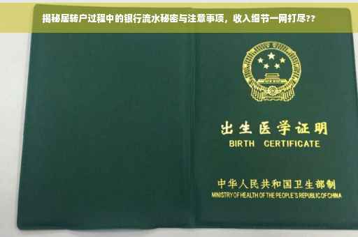 随着城市的发展和人口的不断增长,越来越多的人选择在城市中长期居住和工作,而户口的转移则成为了他们必须要面对的问题之一,在这个过程中,银行流水成为了居转户过程中的一项重要证明材料,本文将详细介绍居转户过程中的银行流水及其他注意事项,帮助大家顺利完成户口迁移。