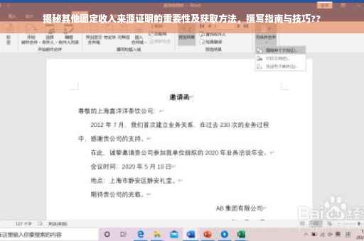 摘要:本文将探讨其他固定收入来源证明的重要性和获取方法。通过深入了解固定收入来源证明的作用,我们将讨论如何撰写此类证明,并强调其关键要素。本文将介绍不同来源的收入证明,包括投资、租金收入等,并解释如何有效获取和呈现这些证明。阅读本文,将帮助您了解如何准备完整的收入证明,以支持您的财务计划和申请过程。