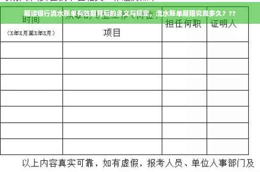 在金融领域,银行流水账单作为记录个人或企业账户交易的重要文件,其重要性日益凸显,本文将详细介绍银行流水账单的基本概念、有效期限及其背后的含义与规定,以帮助公众更好地理解和使用银行流水账单。