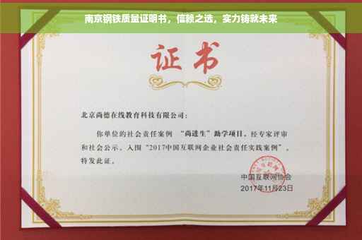 随着工业领域的飞速发展,钢铁行业作为国民经济的重要支柱,其产品质量直接关系到各行各业的安全与发展,南京钢铁作为国内领先的钢铁企业,一直秉承着“质量至上,信誉第一”的原则,致力于为客户提供优质、可靠的钢铁产品,本文将深入探讨南京钢铁的质量证明书,向您展示其卓越品质、严谨管理和强大实力。