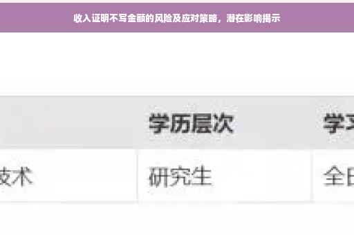在现代社会,收入证明成为了许多场合的必备文件,无论是申请贷款、办理信用卡、租房还是职场晋升,它都扮演着重要的角色,在某些情况下,人们可能在收入证明中避免写明具体金额,这背后隐藏着一定的风险,本文将深入探讨收入证明不写金额的风险,并为大家提供应对策略。