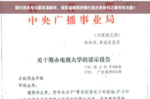在现代社会中,随着经济的发展和人们交往的频繁,借贷活动日益普遍,欠条作为借贷双方的一种约定凭证,广泛应用于个人、企业之间的借贷行为,而在处理涉及金钱往来的事务时,银行流水成为了一个重要的证明文件,欠条上是否需要提供银行流水呢?本文将对这一问题进行详细的解答,并介绍银行流水在欠条中的作用及相关注意事项。