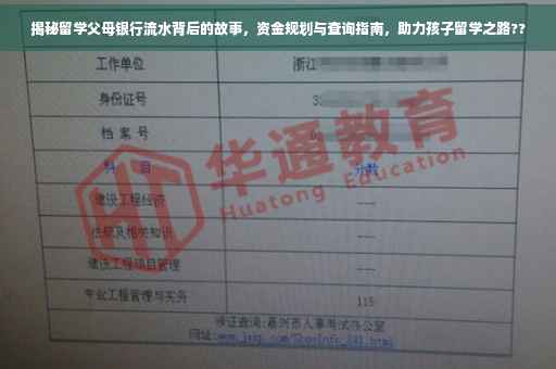 摘要:本文将揭示留学父母银行流水的重要性及其背后的故事,同时介绍如何合理规划资金以支持孩子的留学之路。了解如何查看银行流水记录,对于留学家庭来说至关重要。通过本文的指导,家长们可以更好地管理家庭财务,确保孩子顺利出国留学。