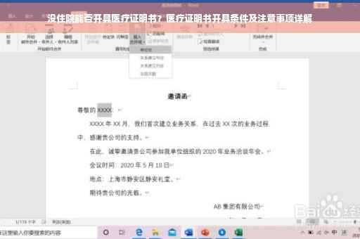 摘要:关于没开住院证明能否开具医疗证明书的问题,需了解医疗证明书的开具条件和注意事项。通常情况下,医疗证明书应由具备执业资格的医生根据患者病情开具,即使没有住院,门诊病人也可开具医疗证明书。但需注意,证明书应真实、详细、完整,医生需确保了解患者病情并遵循相关规定,以确保其有效性和合法性。