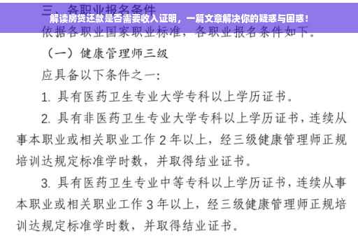 值得注意的是,不同地区的银行和金融机构对收入证明的要求可能有所差异,借款人在申请房贷前,应充分了解所在地区和具体金融机构的要求,以便做好充分的准备。