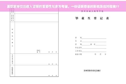 在现代社会,随着职场竞争的日益激烈,离职已成为职业生涯中的常态,而在离职过程中,单位出具的收入证明往往扮演着举足轻重的角色,本文将围绕离职前单位出收入证明这一主题,深入探讨其重要性、具体作用,以及在离职过程中可能产生的多方面影响。