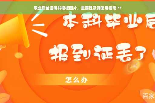 本文介绍了敬业质量证明书模板图片的作用、内容、制作方法以及应用场景,质量证明书在企业和组织中具有重要的应用价值,有助于提高产品质量和市场竞争力,建议企业和组织规范制作质量证明书,确保产品质量的可靠性和稳定性,通过本文的介绍,希望能对大家了解和应用敬业质量证明书模板图片有所帮助。