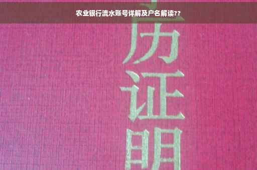 摘要:本文将详细介绍农业银行流水户名的相关内容。首先介绍了农业银行流水账号的基本概念,随后详细解释了流水户名的含义和作用。包括如何查询和识别户名以及注意事项等。让读者了解如何正确使用农业银行流水户名,确保个人资金安全。本文旨在为农业银行客户提供有关流水户名的指导,帮助更好地管理个人财务。