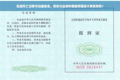摘要:在线制作死亡证明书涉及现实与法律的边缘游走,其有效性备受争议。这种服务是否可靠尚待验证,需审慎对待。在法律层面上,死亡证明是严肃的官方文件,应由专业机构出具。在线制作可能涉及虚假证明的风险,不符合法律规定的程序。公众应保持警惕,避免使用不可靠的在线服务,确保个人行为符合法律法规。