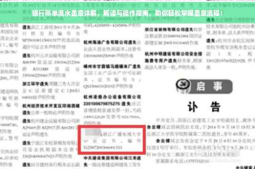 随着金融行业的快速发展,银行账单流水盖章成为了金融业务办理中不可或缺的一环,无论是个人还是企业,在办理贷款、签证、税务申报等事务时,都需要提供银行账单流水盖章作为证明,本文将详细介绍银行账单流水盖章的相关知识,帮助读者更好地了解并正确操作。