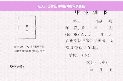 摘要:,,本文介绍了如何撰写迁入户口村证明书。该证明书是证明个人迁入户口所在地的官方文件,需要详细记录迁入人的基本信息、迁入时间和地点等内容。本文提供了迁入户口村证明书的写作指南,包括证明书的格式、需要包含的关键信息以及注意事项等,以帮助人们正确、规范地撰写迁入户口村证明书。