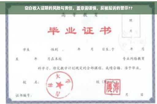 摘要:空白收入证明盖章存在风险,若不当使用可能导致法律责任。若因盖章空白收入证明被起诉,将面临法律警示。在盖公章前需审慎核实,确保证明内容真实合法。建议加强管理和规范操作,避免潜在法律风险。