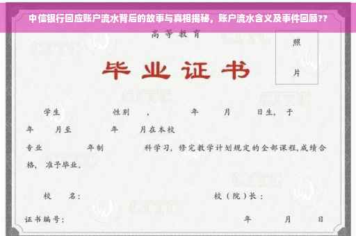 中信银行回应账户流水背后的故事,揭示真相。账户流水指的是银行账户交易明细,包括资金流入和流出情况。中信银行回应此事,旨在澄清误会,说明账户流水的真实含义,同时展示银行在处理相关事务时的透明度和公信力。这一回应对于公众了解银行运营情况、维护个人财产安全具有重要意义。