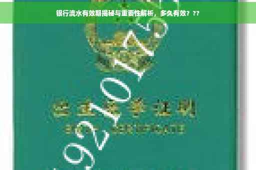 摘要:银行流水作为个人或企业信用状况的重要证明,其有效期及重要性不容忽视。银行流水通常有效期为3个月至半年不等,但具体时间可能因银行政策或业务需求有所调整。有效的银行流水对于贷款申请、信用卡办理等金融业务至关重要,能反映申请人的收入状况及偿债能力。了解银行流水的有效期并妥善保管相关记录,对于维护个人金融信用具有重要意义。