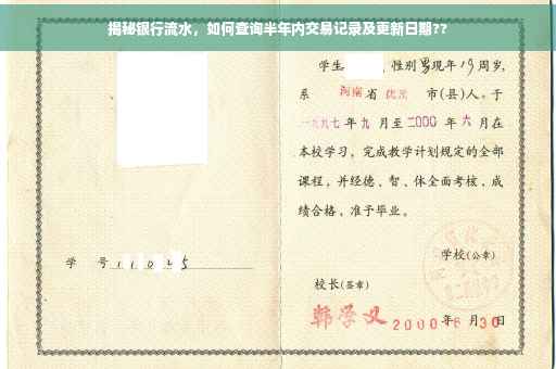 摘要:本文将指导您如何查看银行流水最近半年的交易记录,同时揭示银行流水更新的具体时间。通过简单步骤,您可以轻松掌握自己的账户动态,了解交易情况。本文将为您解析如何操作,以便您更好地管理个人财务。
