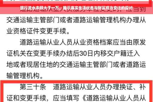 近年来,随着经济的发展和人们收入水平的提高,越来越多的人开始关注自己的财务状况,银行流水余额大于一万,似乎成为了许多人追求的目标,这一现象背后所反映的,不仅仅是人们的经济实力提升,更是生活状态与财富观念的深刻变迁。