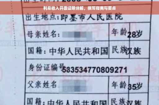 通常为“利息收入证明”。包含收入人的信息,如姓名、身份证号(对个人)或企业名称、统一社会信用代码(对企业)。