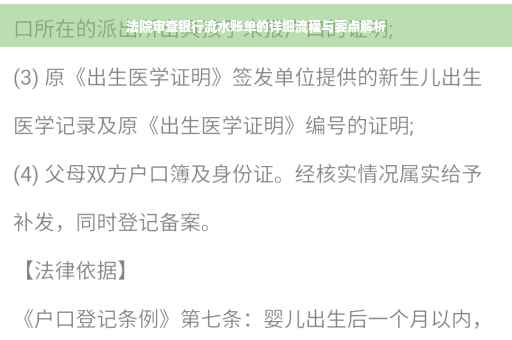 摘要:法院审查银行流水账单的流程包括核对账单真实性、审查交易记录的合法性和合理性等要点。法官会仔细核对银行流水账单的来源、格式和内容,确认其真实性;同时审查交易记录是否合法,是否存在异常交易或不合理转账等情况。审查过程中,法官还会考虑其他证据和情况,综合判断银行流水账单的证明力。