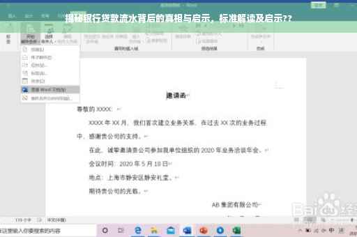 摘要:本篇内容揭示了银行贷款流水段子背后的真相,通过解析银行贷款流水标准,让读者了解贷款过程中的注意事项和可能存在的风险。文章强调了正确理解和应对银行贷款流水的重要性,为读者提供了宝贵的启示和建议。通过阅读本文,读者可以更好地理解银行贷款流程,从而做出明智的决策。
