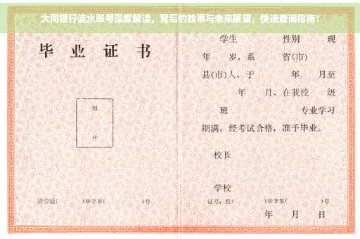 随着金融行业的快速发展,银行作为金融体系的核心组成部分,承担着日益重要的角色,在众多银行中,大同银行以其稳健的经营理念和优质的服务赢得了广大客户的信赖,本文将围绕大同银行的流水账号进行深入探讨,解读其背后的故事,并展望未来的发展趋势。